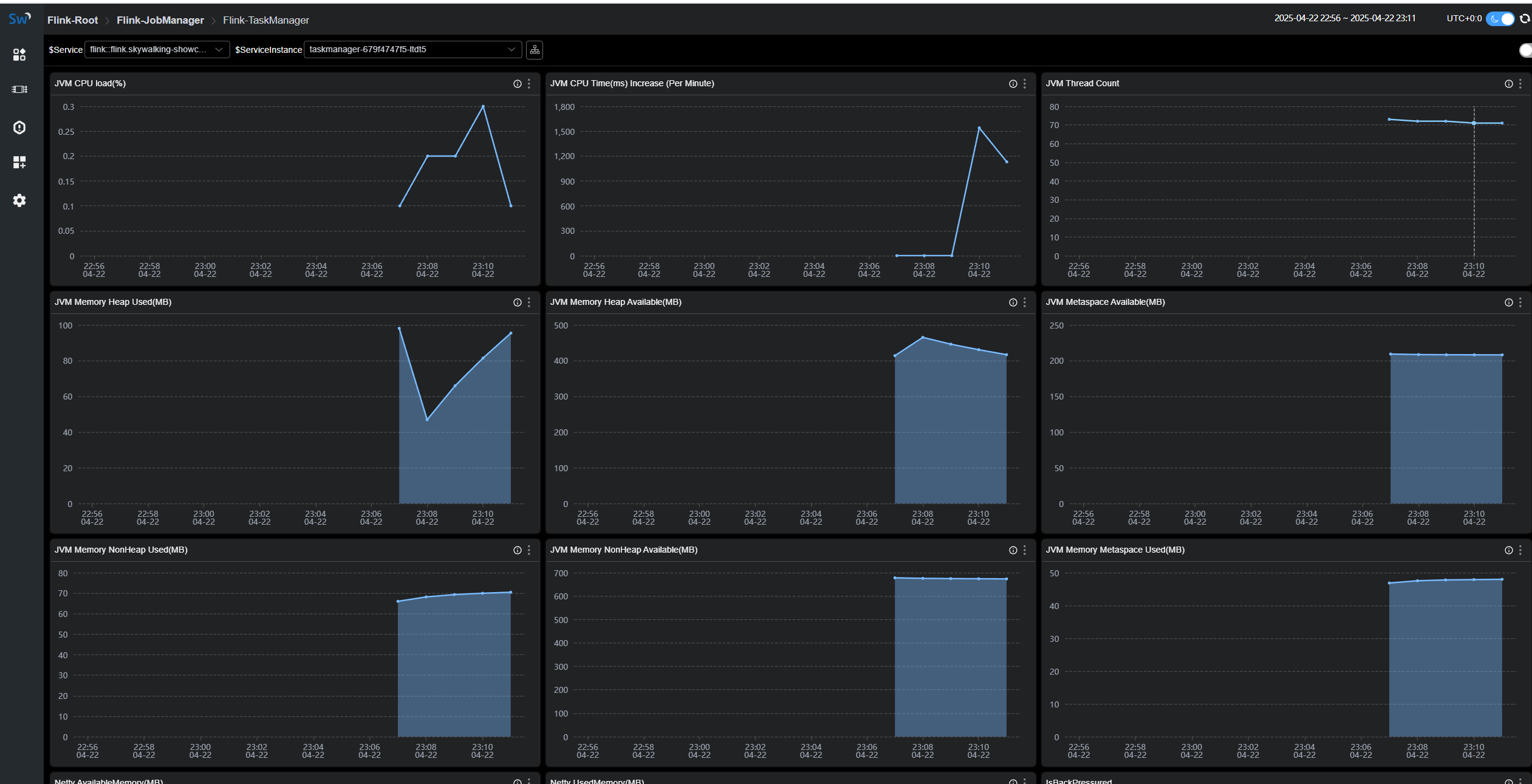 • JVM Memory Heap Available:The amount of JVM heap memory available on the TaskManager node.