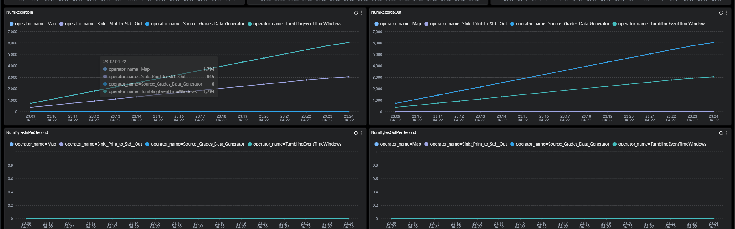 • NumBytesInPerSecond:The number of bytes received per second by the job.