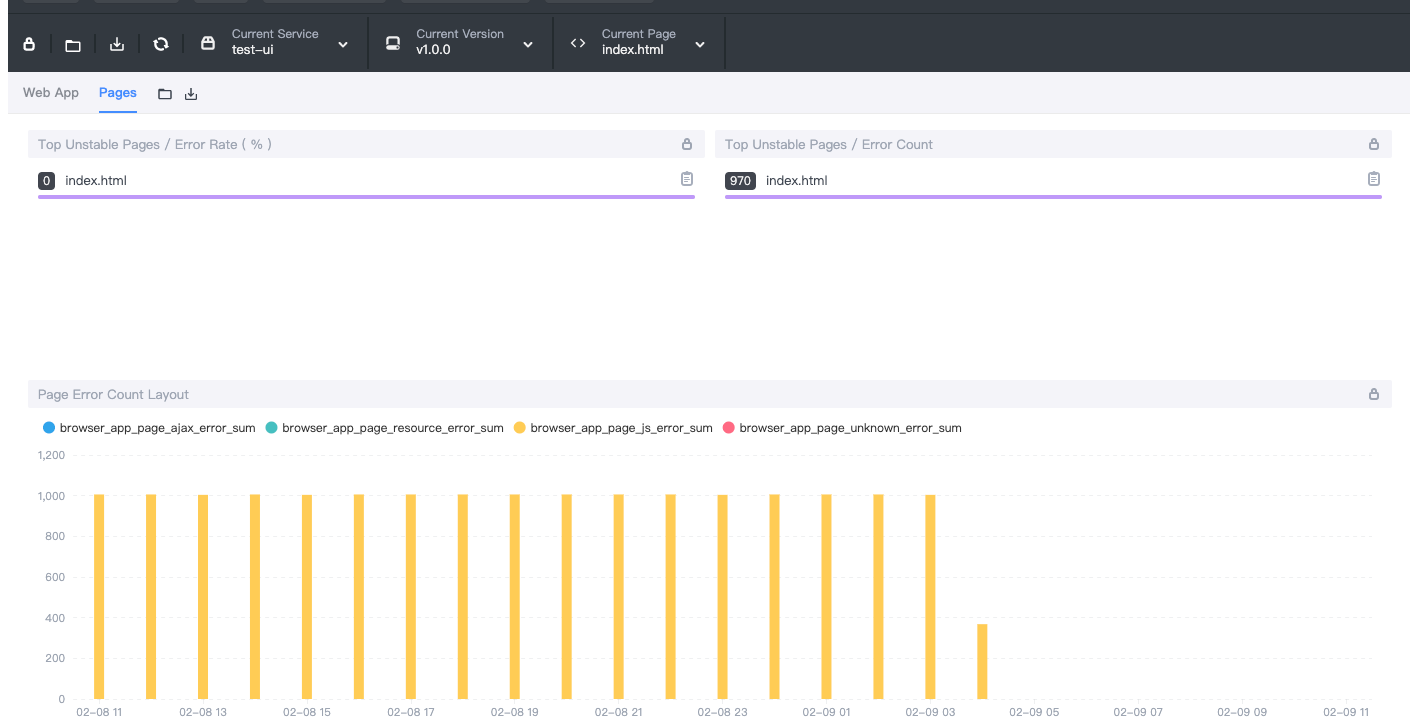 For pages, we use several metrics for basic statistics and trends of errors, including the following metrics: