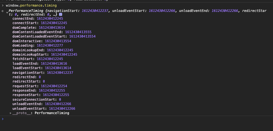 redirectTime Page redirection time redirectEnd - redirectStart If the current document and the document that is redirected to are not from the same origin, set redirectStart, redirectEnd to 0