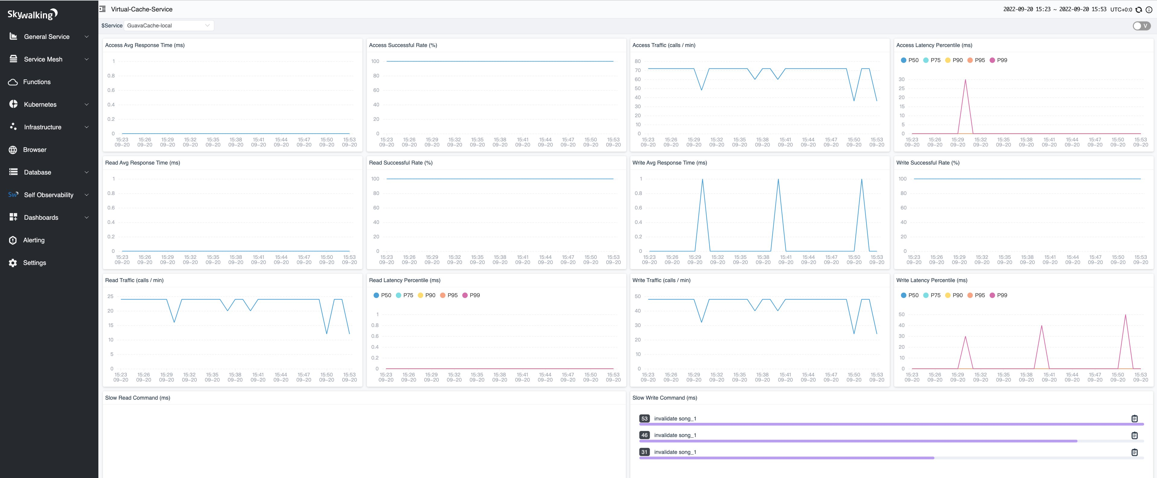 • Support analyzing cache related spans to provide metrics and slow commands for cache services from client side